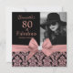 Rose gold glitter black damask | 80th Birthday Invitations. Eighty and Fabulous! A beautiful modern elegant pink rose gold glitter floral damask 80th Birthday Party Invitations you can personalise and send out your eightieth birthday party celebration. At the centre pretty pink bow. Replace the sample photo with your own. The words "80 and Fabulous" are set using popular typhography. You can personalise script fonts and font colours in the design. Please note, this design is a printed photo effect with no real glitter. # 3302b Great for all occasion just change age. Birthday party invites template you can customise with your own details and age. Pretty feminime template for 15th, Sweet 16, Quinceanera, 18th, 20th, 21st, 30th, 40th, 50th, 60th, 70th, 80th, 90th, 100th, Fabulous girls and womens. Please note, this design is a printed photo effect. If you need help, please contact me.