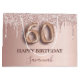 Elegant, classic, glamourous and girly for a 60th birthday party. Rose gold and blush pink, gradient background. Decorated with rose gold, pink faux glitter drips, paint dripping look. Personalise and add a name. With the text: Happy Birthday. The name is written with a modern dark rose coloured hand lettered style script. Number 60 is written with a balloon style font.