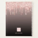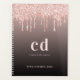 Rose gold, pink faux glitter drip, paint dripping look. Black, brown, coffee latte coloured ombre background. Personalise and add your name, and monogram initials and a title, year (any year). The name is written with a modern hand lettered style script. Rose gold coloured letters.