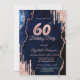 Rose Gold Glitter Drips Blue Agate Marble 60th Invitation