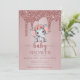 Rose Gold Glitter Drips Cute Elephant Baby Girl Invitation
