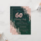 Rose Gold Glitter Drips Green 60th Birthday Invitation