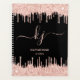 Girly, Elegant, Sylish Light Rose Gold Glitter Drips 2 Monogram Script custom personalised name monogrammed beauty salon planner. Featuring a modern luxury faux light pink rose gold glitter dripping frame, a large double hand lettered monogram script font with swashes (large size initials), and a serif type font name in light pink on black background. Easy to personalise it. Great feminine girly gift for girlfriend, mother, birthday, sweet 16 birthday party, wedding, bridal shower and business, home office, professional work and for anyone who like pretty glamourous shiny things.