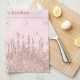 Rose gold glitter drips monogram initials name tea towel