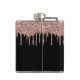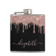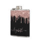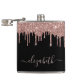 Rose Gold Glitter Drips Personalised Black Hip Flask