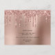 This modern invitation design features faux rose gold dripping glitter metallic texture and elegant calligraphy font.