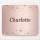 A feminine rose gold faux metallic looking background. Decorated with faux glitter dust. Personalise and add your name. The name is writtten with large, bold letters.