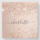 Rose gold glitter dust name script stone coaster