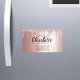 An elegant, feminine and modern business card magnet. A rose gold background, decorated with rose gold, pink faux glitter drips, paint dripping look. Personalise and add your name, monogram initials and contact information. Black and rose gold letters. The name is written with a modern and trendy hand lettered style script.