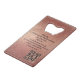 Flaunt your professional services with this rose gold glitter and black bottle opener. You can easily change all the info to your info by selecting the "personalize this template" on right hand side of page, and typing it in the template fields. If you'd like assistance doing so, or have any other questions, please don't hesitate to contact me at either julieartwork4@gmail.com or via Zazzle messaging and I'd be happy to do so! If you like this design, and would like me to design a business card or other Zazzle products, specifically to suit your needs, please contact me as well. Thanks for checking out JulieArtwork Store and have a wonderful day today!