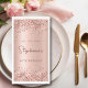 Elegant Modern Sparkle Rose gold glitter metallic Personalised Monogram Name 80th (or ANY AGE) Birthday Party Paper Guest Towels. This Girly Adult feminine Birhday party design featuring a Monogram Name in a stylish handwritten calligraphy script and date and age on blush pink or rose gold faux brushed metallic foil look background with loose glam glitter frame. Ideal for a feminine adult or girly milestone birthday celebration, this perfectly captures the essence of a modern rose gold or blush pink glitter sparkle girly birthday party.