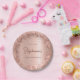Modern Elegant Sparkle Rose gold glitter metallic Personalised Monogram Name 90th (or ANY AGE) Birthday Party Paper Plates. This Girly Adult feminine NINETY (NINETIETH) Birhday party plates featuring a Monogram Name in a stylish handwritten calligraphy script and date and age on blush pink or rose gold faux brushed metallic foil look background with loose glam glitter frame. Ideal for a feminine adult or girly milestone birthday celebration, this perfectly captures the essence of a modern rose gold or blush pink glitter sparkle girly birthday party.