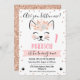 Sweet kitten face themed birthday invitation in pink, faux rose gold glitter and black. This design features a hand drawn kitten's face and floral arrangement in various shades of pink and faux rose gold glitter. This is a sweet way to invite guests to your little girls birthday and great for a little girl who loves kittens. Design is suitable for various ages.