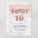 Rose gold glitter letters marble sweet sixteen invitation