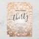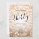 Elegant Glam Rose Gold Glitter Lights 30th Birthday Script template featuring party program, menu text, glitter lights, and modern typography script.