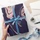 Chic and trendy rose gold glitter marble pattern on editable navy blue background