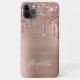 Elegant and girly monogram phone case featuring rose gold glitter dripping down a rose gold brushed faux metallic foil background. Add your name in a stylish white script.