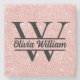 Rose Gold Glitter Monogram | Girly Modern Sparkle Stone Coaster