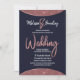 Elegant, chic, and modern faux printed rose gold glitter and rose gold foil circular colour block cutout on navy blue and faux rose gold brush script text, wedding invitations. This classic and sophisticated design is perfect for the trendy and stylish marrying couple. Personalise with your own message on the front as well as a customised monogram initial on the back. All photo print design.