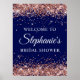 Rose Gold Glitter Navy Bridal Shower Welcome Poster