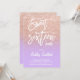 A modern, pretty faux rose gold glitter shower ombre with pastel purple lavender colour block Sweet 16 script typography birthday party invitation with rose gold ombre pattern fading onto a pastel purple background. Perfect for a princess Sweet sixteen, perfect for her, the fashionista who loves modern pattern and glam.
