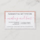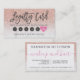 Elegant rose gold glitter sparkles white marble script makeup hair pink heart loyalty card with modern hand lettering style brush typography on white , a simple, professional and minimalist card.