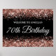 Rose Gold Glitter on Black 70th Birthday Welcome Poster