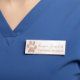 This badge looks professional and it's in keeping with my branding. The magnetic attachment is strong and stays in place all day. The quality of the materials and the colors were exactly as pictured. I couldn't be happier! The printing is clear and easy to read