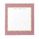 Features a gold bordered frame, against a rose gold and gold glitter pattern background. Personalise the notepad with your own name or text.