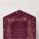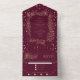 Rose gold glitter pine, confetti burgundy wedding all in one invitation