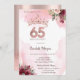 Rose Gold Glitter Roses Crown 65th Birthday Party Invitation