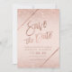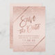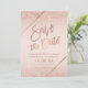 Rose Gold typography on customizable blush pink rose gold glitter ombre and faux rose gold geometric stripes chic save the date wedding , perfect for elegant, stylish wedding,