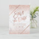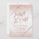 Rose gold glitter script chic marble save the date