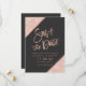 Rose Gold typography on customisable dark grey rose gold glitter colour block, and faux rose gold geometric stripes chic save the date wedding , perfect for elegant, stylish wedding,