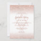 Rose gold typography and rose gold glitter ombre blush pink Bat Mitzvah party invitation on editable white. Add your Hebrew name or delete