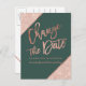 rose Gold typography on customisable deep forest green rose gold glitter colour block, and faux rose gold geometric stripes chic change the date wedding , to announce the postponement of your wedding and new plans