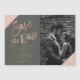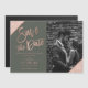 Rose Gold typography on customisable dark sage green rose gold glitter colour block, and faux rose gold geometric stripes chic save the date wedding , perfect for elegant, stylish wedding,