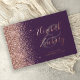 This elegant wedding guest book features a rose gold faux glitter border on a dark purple background. Easily customise the real rose gold foil text, with the names of the couple in whimsical handwriting calligraphy over a large ampersand. Add additional text of your choice to the front and spine.