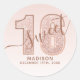 Rose Gold Glitter Script Sweet 16 Birthday Classic Round Sticker. This trendy design is accented with rose gold glitter against a blush pink ombre background. Personalise this custom design with your own details.