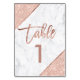 rose Gold typography on white marble  rose gold glitter colour block, and faux rose gold geometric stripes chic table number wedding , perfect for elegant, beach wedding,