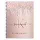 A faux rose gold metallic looking background with elegant rose gold and pink and faux silver glitter drips, paint dripping look. Personalise and add a name, monogram letter and a title. The name is written in burgundy with a large modern hand lettered style script with swashes. Perfect for school, work or as a your secret diary.