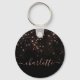 Create your own personalized black and rose gold diamond sparkle keychain with your custom modern handwritten script name.