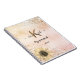 A rustic rose gold and pink metallic looking background decorated with faux gold and silver glitter dust and a rustic watercolored sunflower. Personalise and add a year, name, monogram initial and a title. The name is written in black with a modern hand lettered style script.