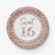 Rose Gold Glitter Sweet 16 Birthday Party Paper Plate