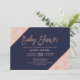 Rose Gold glitter colour block typography on customisable navy blue and faux rose gold geometric stripes chic baby shower , perfect for elegant, luxurious baby shower