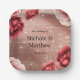 Rose Gold Glitter with Red Roses Wedding Paper Plate
