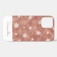 This girly Christmas iPhone 12 case features a cute and trendy winter pattern with white stars and snowflakes on a faux rose gold glitter background. Personalise it with a name in rose gold font.