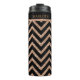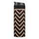 Chic Thermal Tumbler done in a black and glittery looking rose gold chevron pattern. Personalise the golden tan coloured text to read what you want. Great gift idea.