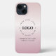Showcase your brand with this pink iPhone case featuring a rose gold metallic gradient, your business logo, and editable text for your website or social media. Perfect for small business branding, corporate promotions, or employee gifts, this feminine, stylish layout is both modern and professional. Just add your logo and custom text to make it yours.