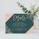 Rose Gold typography on customisable emerald green and faux rose gold geometric stripes, glitter and confetti chic wedding directions and details , perfect for elegant, chic wedding,